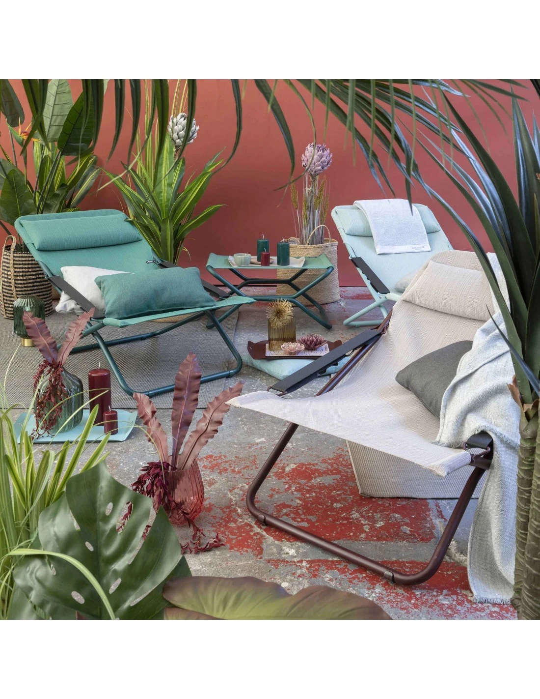 Avec sa toile batyline Duo, son confort, sa têtière, ce transat de jardin pliable pourra être transporté facilement.