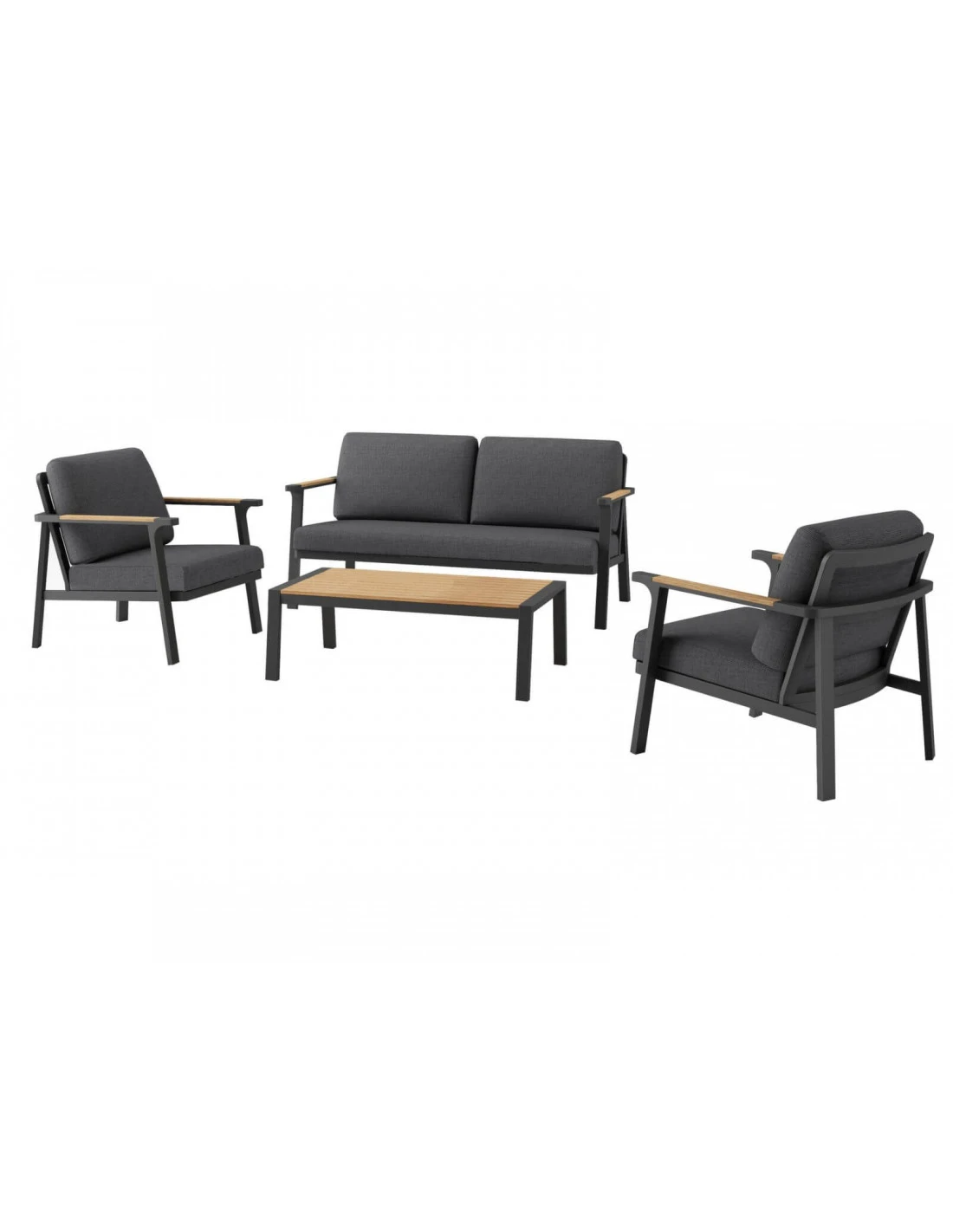 Table De Jardin Azua Pliante Carrée 2 Places – Aluminium – Gris Smoke Plateau Ect Effet Bois