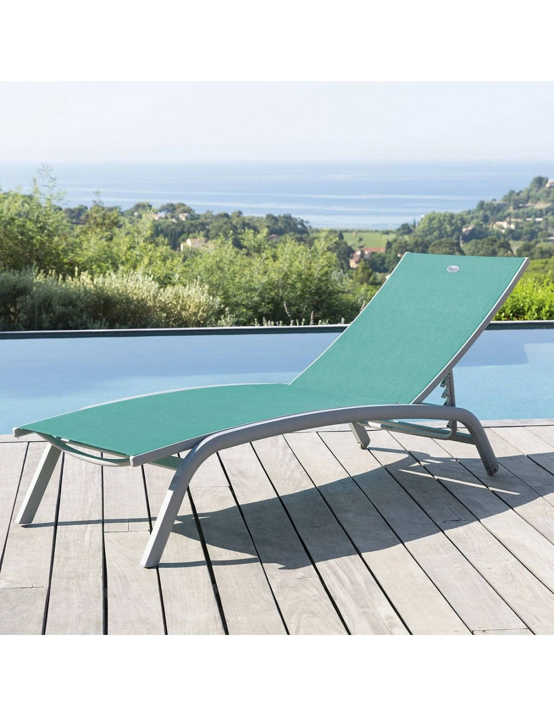 Transat Bonao 4 Positions – Aluminium Et Texaline – Silver / Emeraude